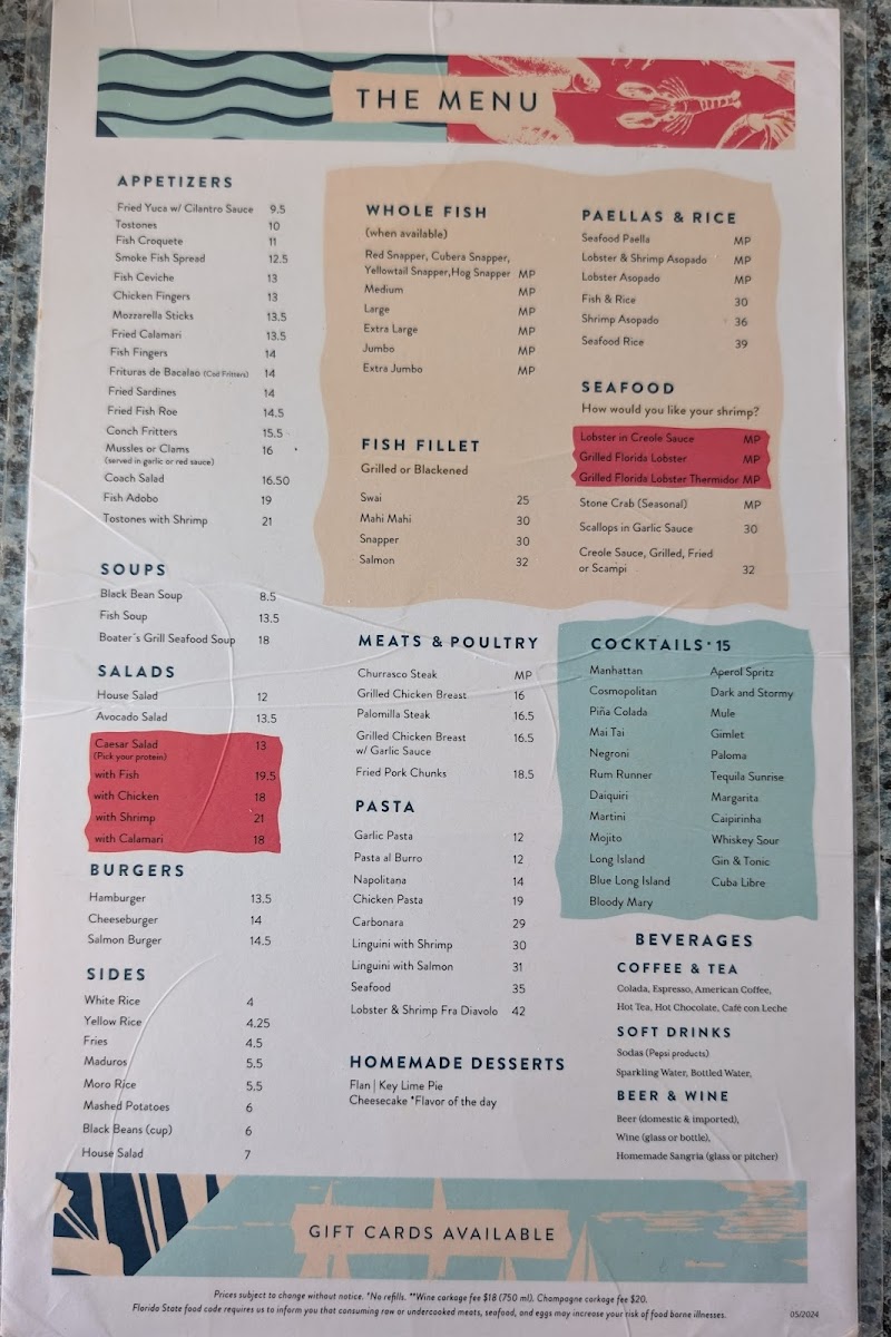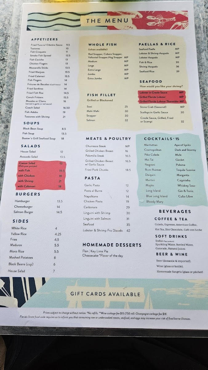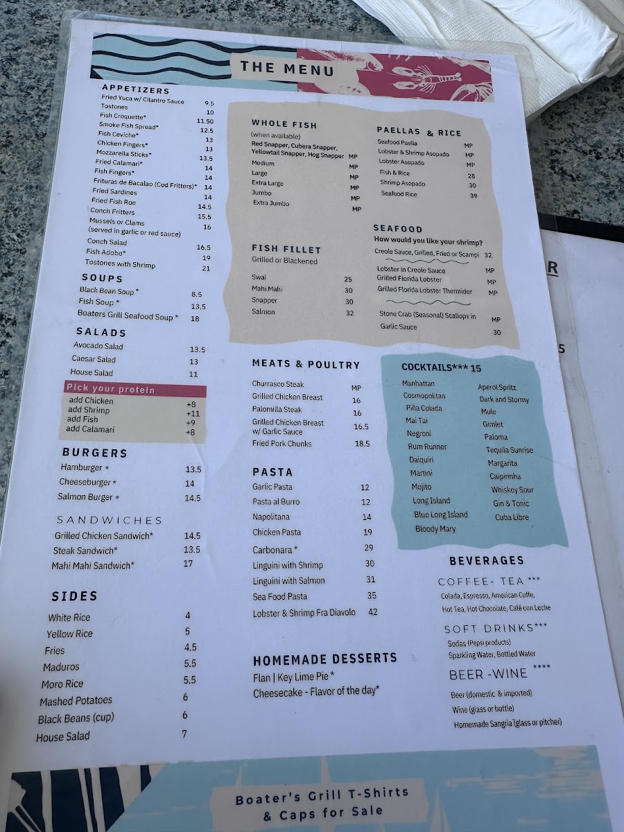 Boater’s Grill is best known for its authentic Cuban cuisine and fresh seafood, offering a diverse menu that includes grilled snapper, ceviche, and traditional paellas. Each dish is crafted with quality ingredients, promising flavors that resonate well with every palate. Reviewers rave about the ceviche and grouper sandwiches, highlighting their freshness and bold tastes.